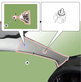 A-Säulenverkleidung (A) mit einem Ausbauwerkzeug ausbauen.