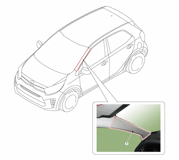 Bauteile und bauteile-Übersicht BAUTEILE-ÜBERSICHT 1. Untere B-Säulenverkleidung 2. Obere B-Säulenverkleidung Reparaturverfahren AUS- UND EINBAU Handschuhe anziehen, um die Hände zu schützen.