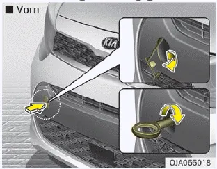 Wenn in einem Notfall Abschleppen erforderlich ist, wird empfohlen, dies von einem Kia-Vertragshändler oder einem gewerblichen Abschleppdienst machen zu lassen.