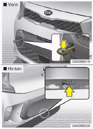 Wenn das Fahrzeug abgeschleppt werden muss, empfehlen wir, es von einer Kia-Vertragswerkstatt oder einem Abschleppunternehmen abschleppen zu lassen.