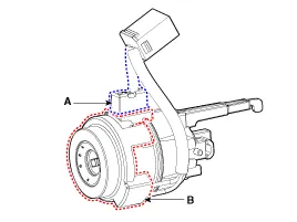 6P-Steckverbinder (A) der Spiralantenne abziehen und dann die Antennenspule (B) nach dem Lösen der Schraube ausbauen.
