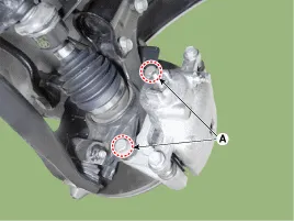 Nach dem Entfernen der Schrauben vom vorderen Achsschenkel, die Hilfskörperschraube (A) anbringen und festziehen.