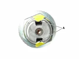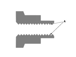 Sicherungsmutter der Antriebswelle durch neue Mutter ersetzen. Beim Ersetzen der Sicherungsmutter der Antriebswelle eine Mutter mit Schraubengewinde (A) am Ende verwenden.