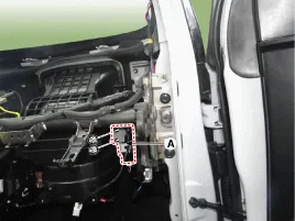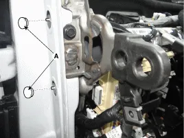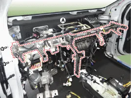 Befestigungsschraube und -muttern lösen, dann Armaturenbrettträger (A) ausbauen. [FAHRERSEITE]