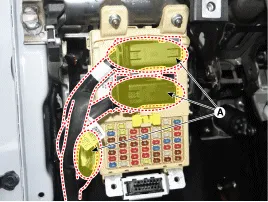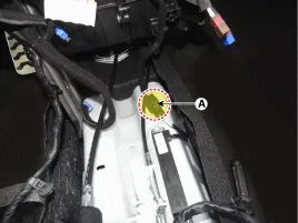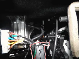 Steckverbinder (A) des Beifahrerfußraum-Sicherungskastens abziehen.