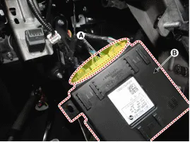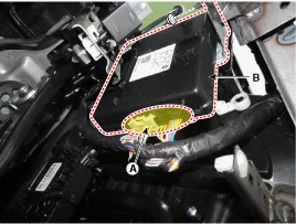 Befestigungsmutter entfernen und Steckverbinder (A) abziehen und BCM-Einheit (B) ausbauen.