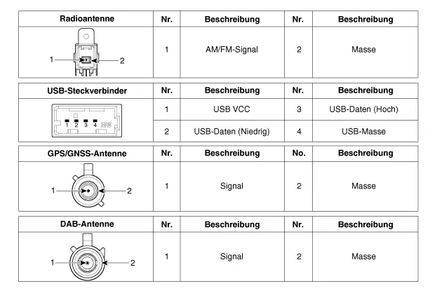 Technische daten Technische Daten Bauteil Technische Daten MODELL Radio/MP3/Bluetooth (Typ A) Radio/MP3/Bluetooth (Typ B) Stromversorgung DC 14,4 V Kriechstrom Max.