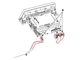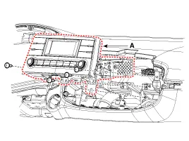 Die Audio-Haupteinheit ausbauen, nachdem zuvor Stecker und Antennenkabel (A) abgezogen wurden.