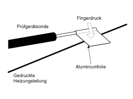Mit einem Ohmmeter den Widerstand der einzelnen Heizschleifen zwischen einer Klemme und dem Mittelpunkt einer Gitterlinie und zwischen derselben Klemme und dem Mittelpunkt einer benachbarten Linie messen. In einem Bereich mit unterbrochener Heizschleife ist der Widerstand doppelt so hoch wie in anderen Bereichen. Das Testkabel im betroffenen Bereich bis zu einer Stelle bewegen, an der sich der Widerstand stark ändert.