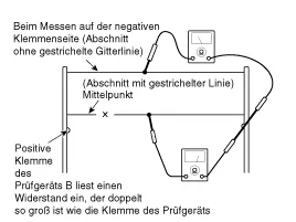 Ist ein Leiter im Bereich zwischen Mittelteil und (-)-Klemme durchgebrannt, zeigt das Voltmeter 0 V an.