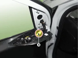 Innenabdeckung (A) des Vordertür-Dreieckfensters mit einem Ausbauwerkzeug abnehmen.