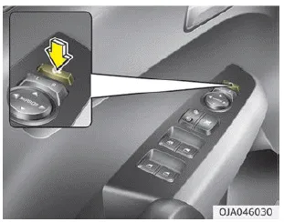Die elektrische Ausführung des Außenspiegels funktioniert auch, wenn der Zündschalter bzw. der Knopf ENGINE START/STOP (Motor Start/ Stopp) in Stellung OFF (Aus) steht.