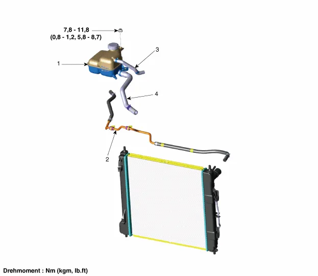 | 1. Ausgleichsbehälter 2. Ausgleichsbehälterschlauch und -leitung |