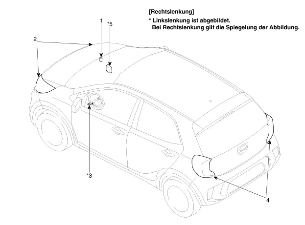 | 1. AUTO Licht-Sensor 2. Scheinwerfer 3. Lichtschalter (mit Licht-Automatik) |