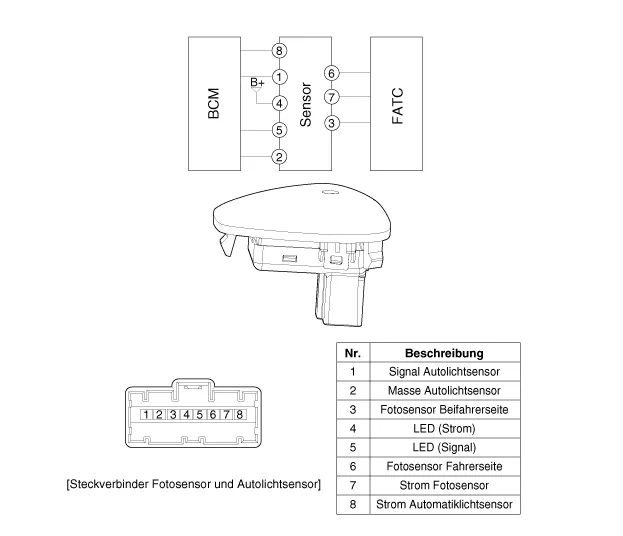 Steckverbinder des Auto-Lichtsensors anschließen. |