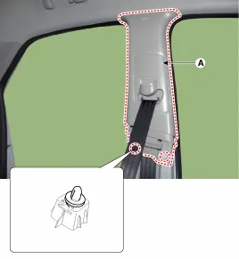 Untere B-Säulenverkleidung (A) mit einem Abzieher ausbauen.