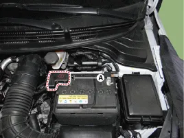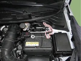 An den Batteriepolen (A) rütteln, um festzustellen, ob sie lose oder korrodiert sind. Korrodierte Klemmen müssen gereinigt werden.