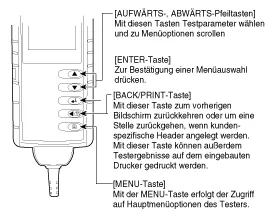 BACK/PRINT-Taste drücken, um die Testergebnisse auszudrucken oder MENU