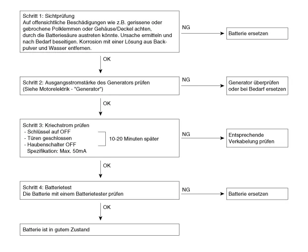 Batterieträger auf Beschädigungen prüfen, die durch Elektrolytverlust