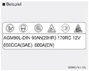❈ Die tatsächliche Batteriekennzeichnung im Fahrzeug kann von der Abbildung abweichen.