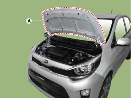 Befestigungsschrauben des Motorhaubenscharniers lösen und dann Motorhaube (A) entfernen.
