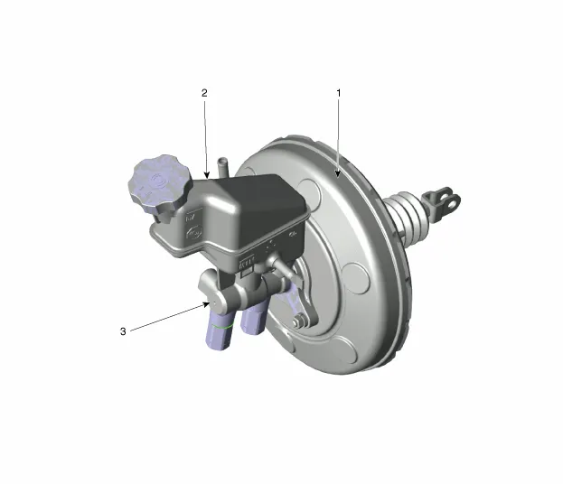 Bauteile und bauteile-Übersicht BAUTEILE-ÜBERSICHT 1. Bremskraftverstärkereinheit 2. Behälter 3. Hauptzylinder Reparaturverfahren Ausbau 1.