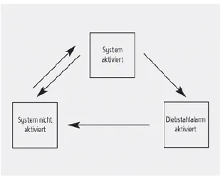 Das System ist so konzipiert, dass es vor unbefugtem Zutritt zum Fahrzeug schützt. Das System arbeitet in drei Zuständen: der erste Zustand ist „aktiviert“, der zweite Zustand ist „Diebstahl- Alarm“ und der dritte Zustand ist „System deaktiviert“. Wenn eine Auslösung stattfindet, gibt das System akustischen Alarm und schaltet gleichzeitig die Warnblinker ein.