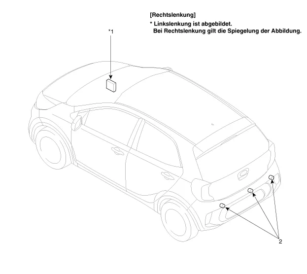 Ist das System eingeschaltet (nach Einschalten der Zündung und Schalten in den Rückwärtsgang) prüft MICOM alle Sensorkanäle. Wenn ein Fehler gefunden wird, ertönt das akustische Signal nach 500 ms 300 ms lang. Wird ein Fehler sogar in einem Sensor gefunden, ertönt ein akustisches Signal entsprechend dem defekten Sensor anstelle eines anfänglichen Startalarms. Das Umstellen auf Normalmodus geschieht wie folgt.