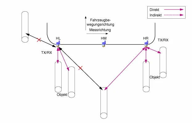 (Ausführung für die einzelnen Sensoren RL, RC, RR)