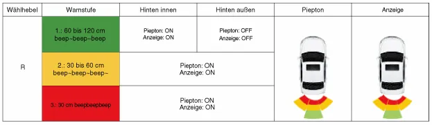 Bei eingelegtem Rückwärtsgang arbeitet das System wie folgt.