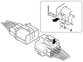 Zum Trennen einiger Steckverbinder mit Befestigungsklammer muss zuerst die Verriegelung gelöst und der Steckverbinder von der Halterung (A) getrennt werden.