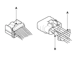 An einigen Steckern ist seitlich eine Klammer angebracht, um die Stecker an der Karosserie oder an anderen Bauteilen befestigen zu können. Zum Entriegeln dieser Klammern muss der Entriegelungshebel nach oben gezogen werden. |