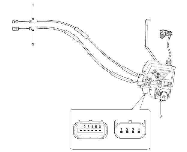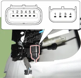 Funktion des Stellantriebs durch Anschließen von Strom und Masse wie unten gezeigt überprüfen. Um eine Beschädigung des Stellantriebs zu vermeiden, nur kurzzeitig Batteriespannung anlegen. [6-poliger Steckverbinder]