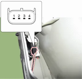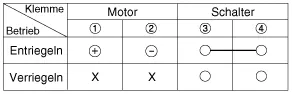 Funktion des Stellantriebs durch Anschließen von Strom und Masse wie unten gezeigt überprüfen. Um eine Beschädigung des Stellantriebs zu vermeiden, nur kurzzeitig Batteriespannung anlegen. [4-poliger Steckverbinder]