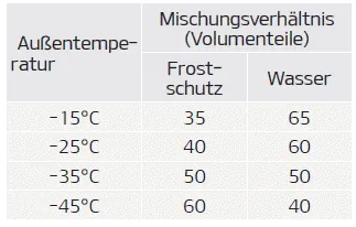 Entnehmen Sie das Mischungsverhältnis der nachstehenden Tabelle.