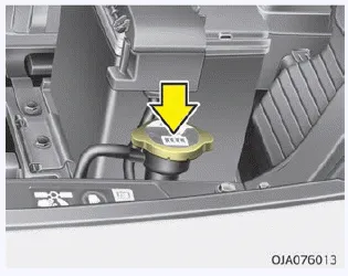 Lassen Sie das Kühlmittel von einer Fachwerkstatt austauschen. Kia empfiehlt den Besuch eines Kia-Händlers/ Servicepartners. ACHTUNG Legen Sie vor dem Auffüllen des Motorkühlmittels ein dickes Tuch um den Kühlerverschlussdeckel, um zu vermeiden, dass Kühlmittel auf Motorteile, z.