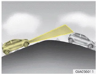 Wenn das AEB bei einer Bergfahrt plötzlich das vorausfahrende Fahrzeug erkennt, kann es zu einem starken Bremseingriff kommen. Behalten Sie bei einer Bergauf- oder Bergabfahrt die Straße vor Ihnen immer im Blick, und betätigen Sie bei Bedarf das Bremspedal.