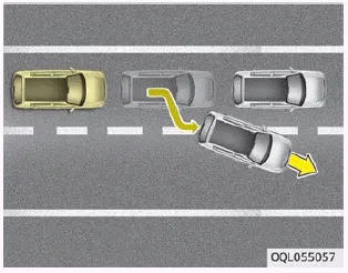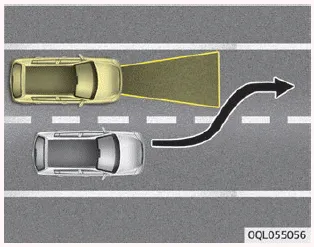 Wenn das Fahrzeug auf der Nebenspur mit einem abrupten Manöver auf Ihre Fahrspur wechselt, ist es besonders wahrscheinlich, dass es nicht erkannt wird. Fahren Sie immer sehr vorsichtig.
