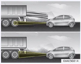 - Fahrzeugerkennung Wenn das vorausfahrende Fahrzeug eine hohe Bodenfreiheit hat oder seine Ladung nach hinten übersteht, kann es zu einer Gefahrensituation kommen.