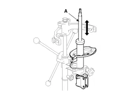 Schrauben lösen und Federbeineinheit (A) aus dem Achsschenkel ausbauen.