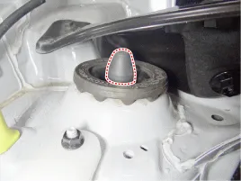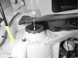 Oberes Federbeinlager auf Verschleiß und Beschädigung prüfen. |
