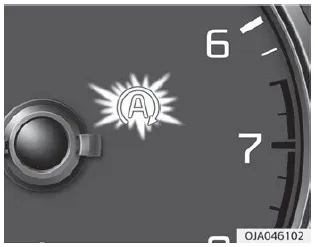 Die gelbe Kontrollleuchte für AUTO STOP ( ) auf dem Kombiinstrument blinkt 5 Sekunden lang und leuchtet dann ständig, die Leuchte auf der ISG OFF-Taste leuchtet.