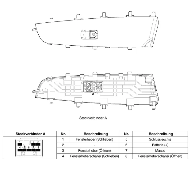 Fensterheberhauptmodul, Fahrerseite (Schließen/Öffnen) |