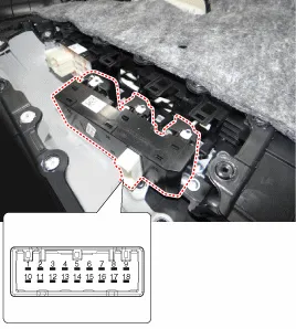 Steckverbinder des Fensterheberschalters aus der Türverkleidung ausbauen. [Fensterheberschalter Beifahrerseite]