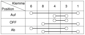 In den einzelnen Schalterstellungen gemäß der folgenden Tabelle auf Durchgang zwischen den Klemmen prüfen. Wenn der Stromdurchgang nicht vorschriftsgemäß ist, den Schalter ersetzen.