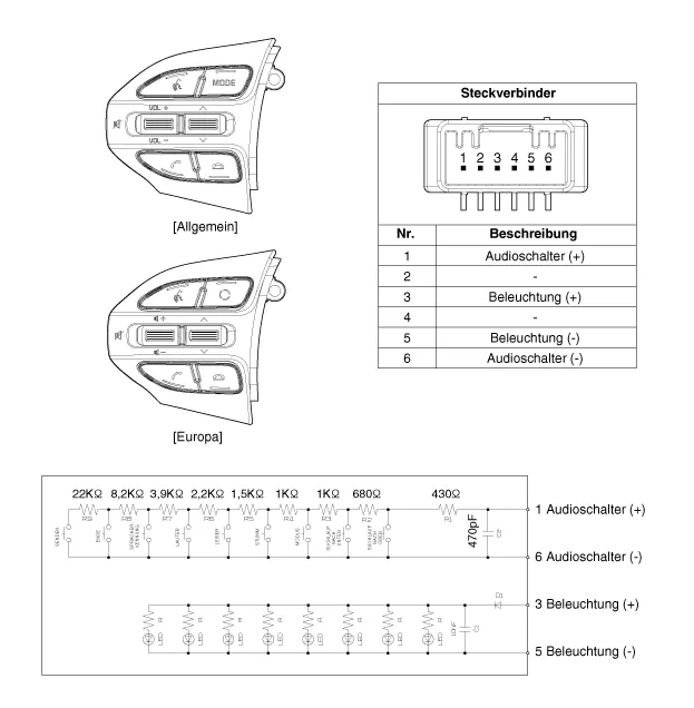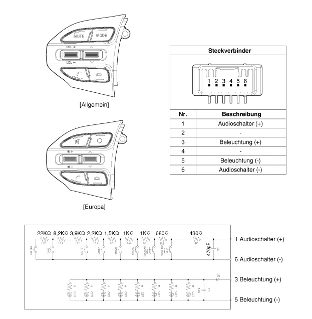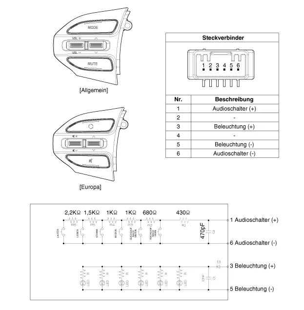 Steckverbinder der Lenkradfernbedienung anschließen. |