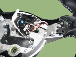 Steckverbinder (A) der Lenkradfernbedienung abziehen. (LINKS)