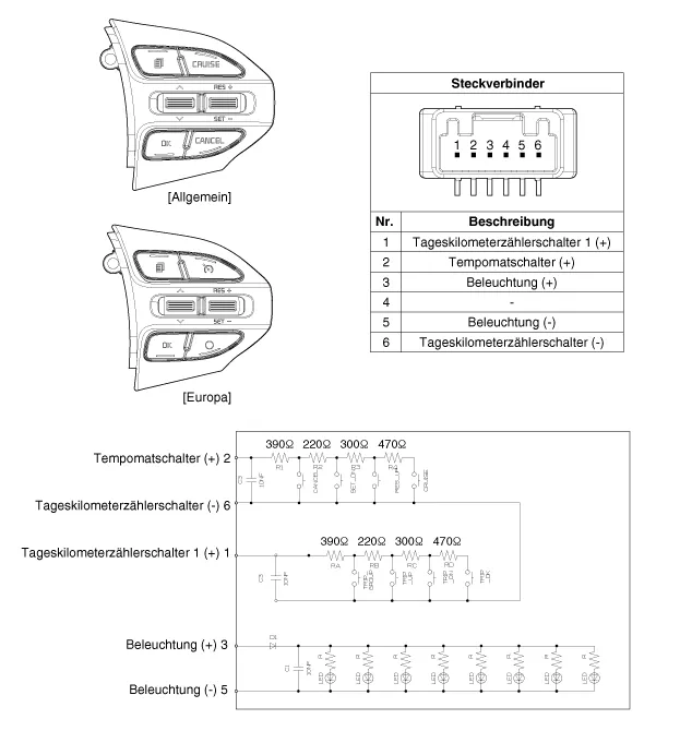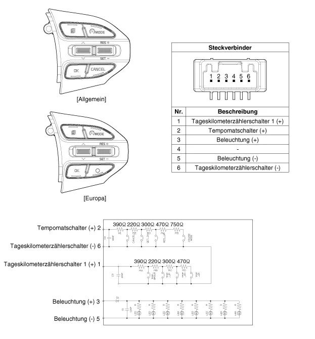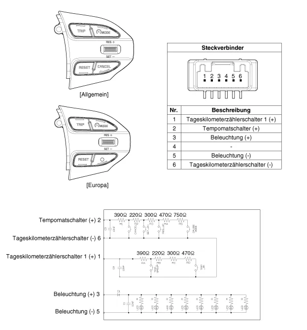| [Tageskilometerzähler (4 Tasten) + ACC + Tempomat] |