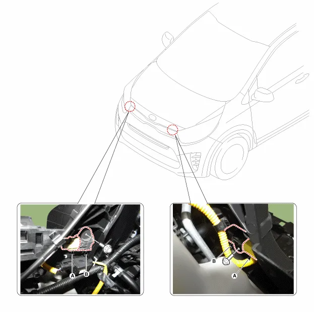 Befestigungsschraube lösen, dann Frontaufprallsensor (B) ausbauen.