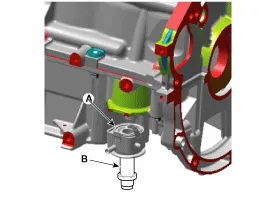 Eine dünne Schicht Motoröl auf die Oberfläche der Ölkühlerdichtung (A) auftragen, dann den Ölkühler mit einer Befestigungsschraube (B) montieren.